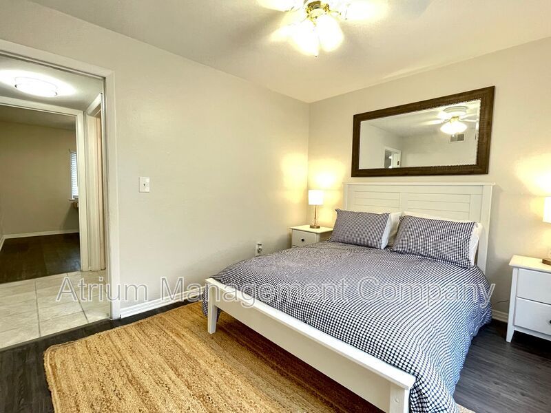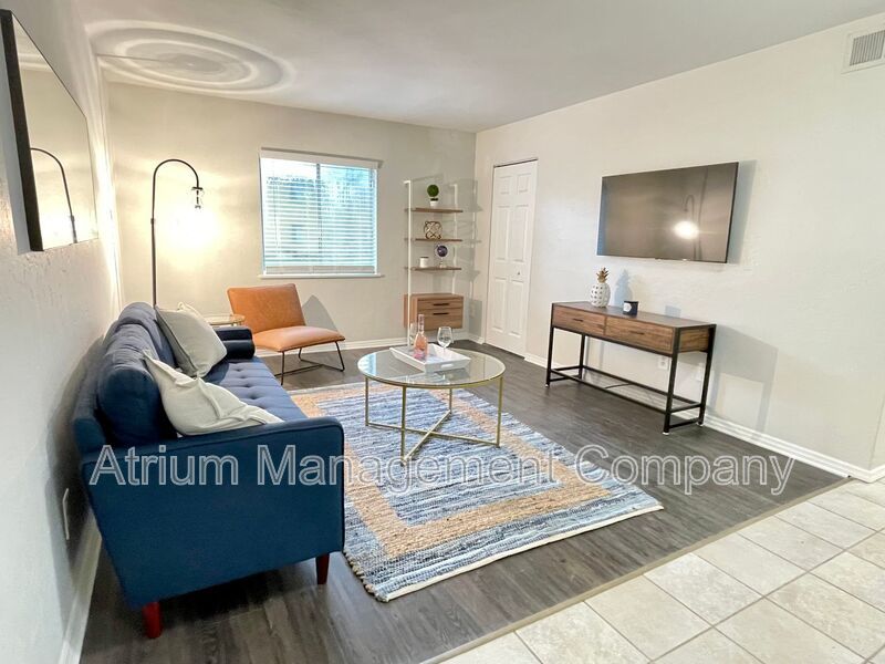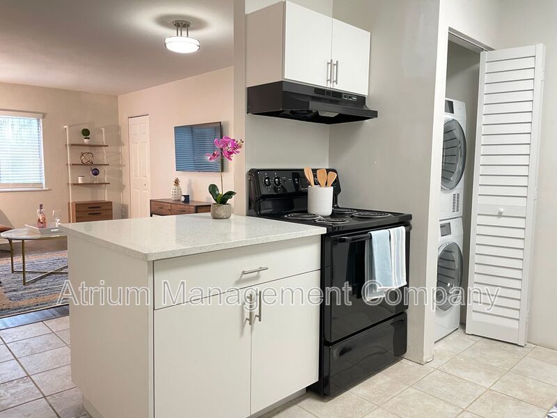 Welcome home to this Beautifully Renovated 2 Bed 2 Bath! This apartment is perfect for your work from home life, due to the spacious open floor plan. The kitchen includes tons of cabinet space, a breakfast bar, quartz counters, and updated cabinets! Relax and enjoy the hard surface flooring throughout, no carpet, and the in unit Washer and Dryer. You will love the finishes in this fully renovated apartment.