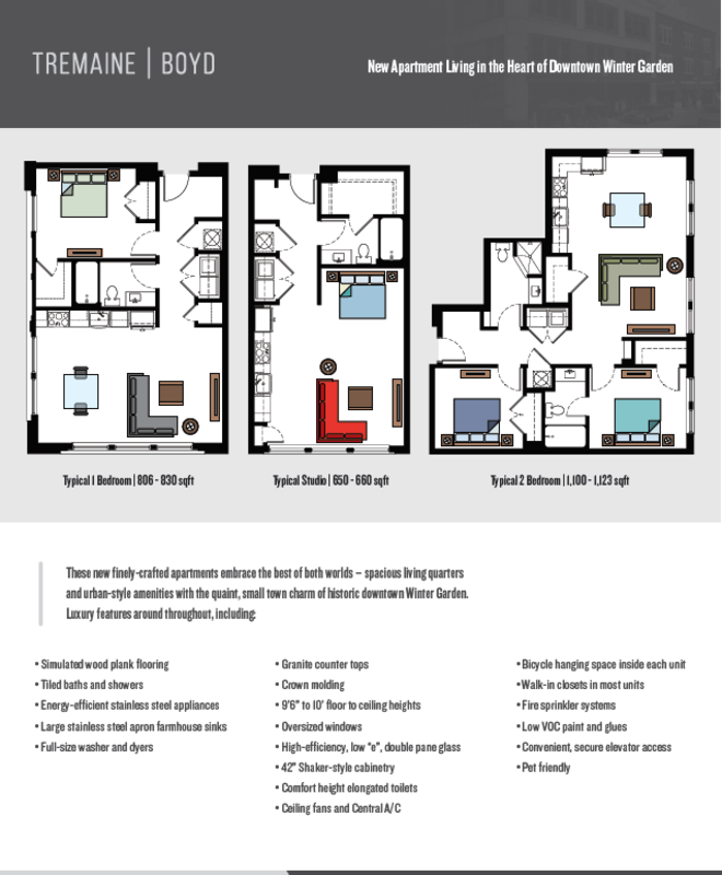 With 22 neotraditional apartments, including studio lofts, one and two-bedroom units, Tremaine Boyd is the place you will want to call home. Located at 109 S. Boyd Street, Tremaine Boyd is one block south of Plant Street, the West Orange Trail, and everything Downtown Winter Garden has to offer.