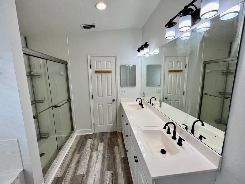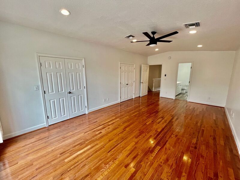 The spacious, oversized master bedroom retreat features two walk-in closets that feature custo closet systems, land that are big enough for even the biggest shoe collection, while the master bathroom provides his and her sinks along with a jacuzzi tub spacious enough for 4 people.
