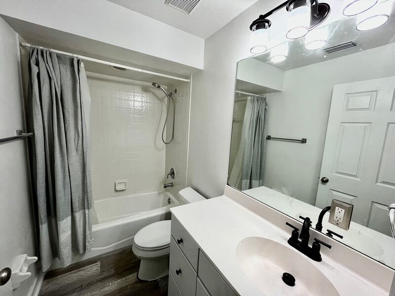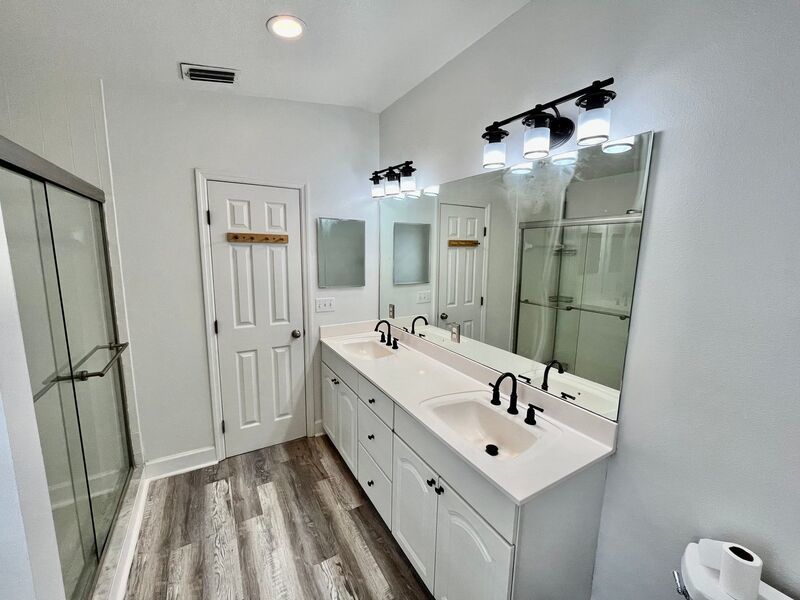 The remaining two bedrooms feature private bathrooms and ample closet space. This pet-friendly townhome also features Nest Hub technology with the air conditioning. The ample laundry room includes storage cabinets, a full sized washer and dryer, and a utility sink. The semi-private, fenced backyard patio is complete with solar lighting for great outdoor entertaining!