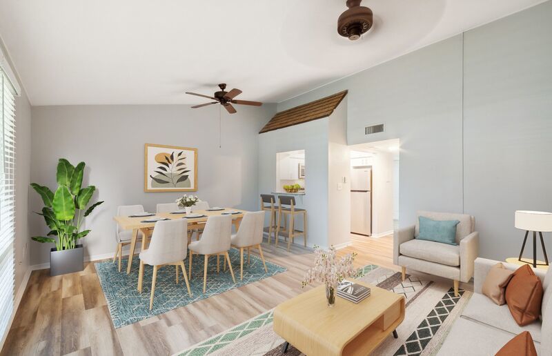 This cozy unit features an updated kitchen with modern appliances, plenty of natural lighting throughout, and a private patio perfect for enjoying your morning coffee or evening relaxation. Stay comfortable year-round with central AC, and enjoy the serene surroundings of Mediterranean Villas.