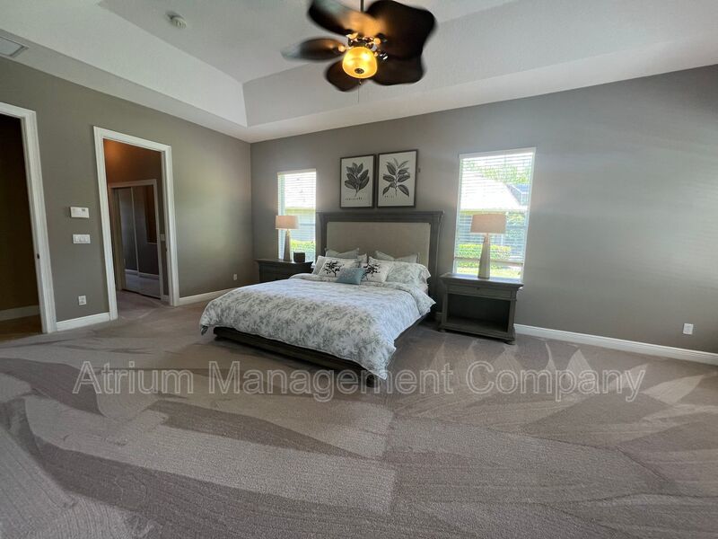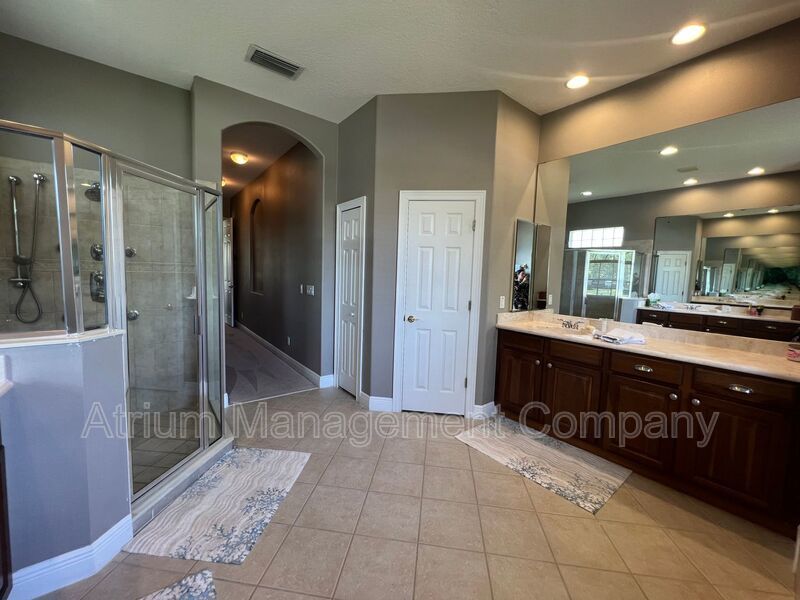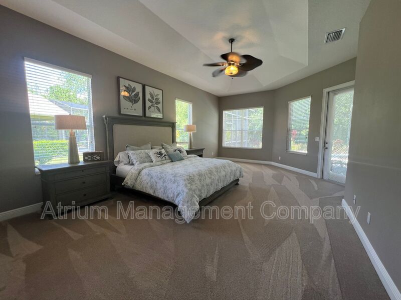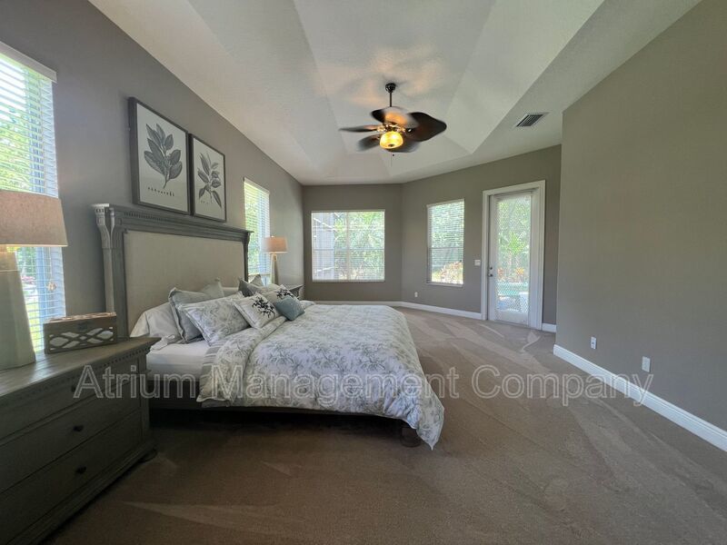 The first floor master bedroom suite includes a sitting area, double large walk-in closets, jet soaking tub and his and her vanities! The second floor has its own open loft area, two additional bedrooms, and a guest bathroom with double sinks. The screen enclosed lanai has two fans, pool and spa.