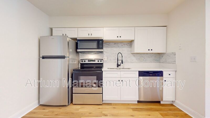 The stylishly remodeled kitchen, features gleaming quartz countertops, stainless steel appliances, and ample storage space.