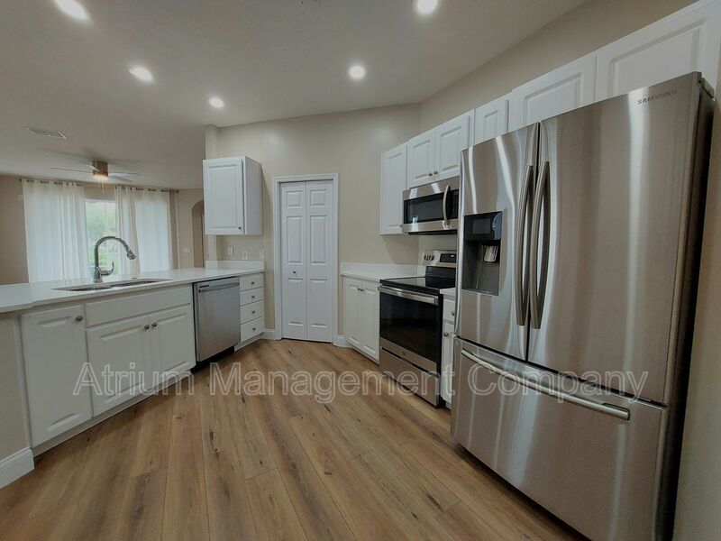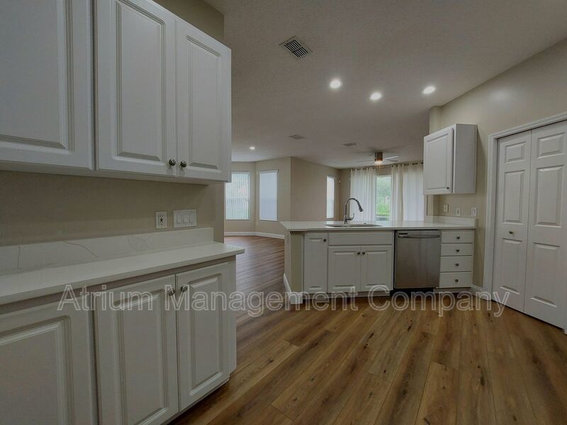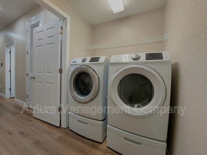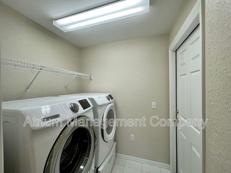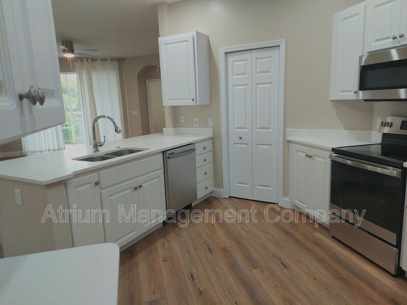 Welcome to 611 Grasslands Village Circle- Murfield Village in Lakeland, FL. This end unit condo features 3 bedrooms and 2 bathrooms, with new LVP flooring throughout and freshly painted walls. This large spacious home features a laundry room that includes a washer and dryer for your convenience. The oversized 2 car garage provides ample storage space. Enjoy breakfast at the breakfast bar, and relax in the primary suite with a garden bathtub and walk-in closet. Located in the Grasslands Community, this home offers comfort in a desirable gated neighborhood. Conveniently located near Lakeside Village Mall and Polk Pkwy. Schools nearby are Dixieland Elementary, Sleepy Hill Middle, and Lakeland Senior High.