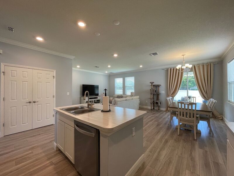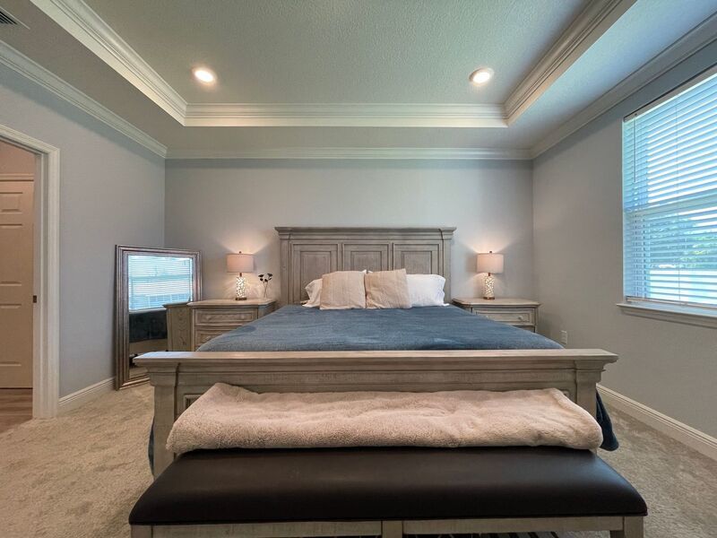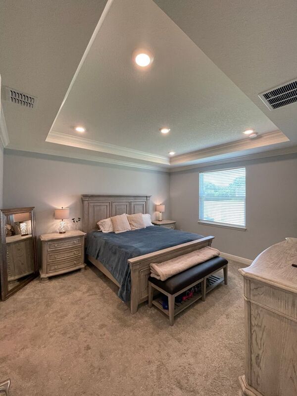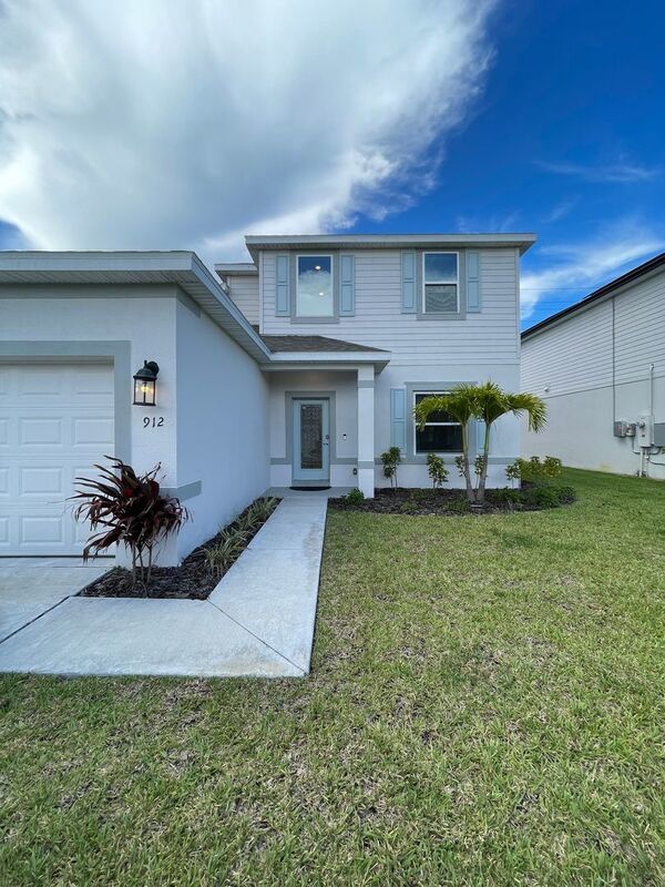 Welcome to this beautiful MOVE-IN READY 4 bedroom, 2.5 bathroom home in Rockledge, FL. This spacious house features a partially fenced back yard, perfect for outdoor activities and privacy. Inside, you'll find blinds, carpet flooring, crown molding, and a tray ceiling for added elegance; Owner's Suite on the first floor. The office space provides a designated area for work or study. Enjoy the convenience of washer dryer hookups and a 2 car garage for parking and storage. The open floor plan allows for easy flow between the living spaces, while the covered patio is ideal for relaxing or entertaining. This pet-friendly home also includes irrigation from a well for easy maintenance. Don't miss out on this fantastic opportunity to make this house your new home!