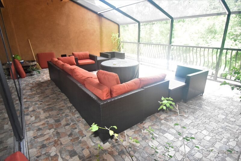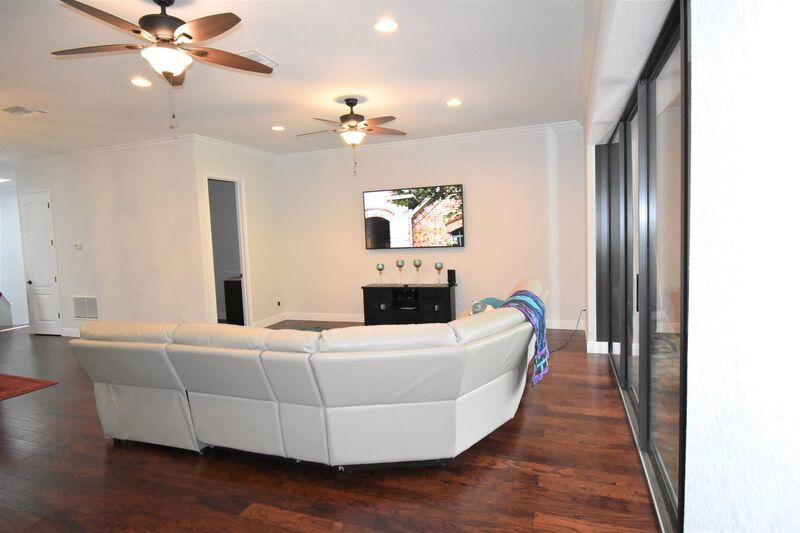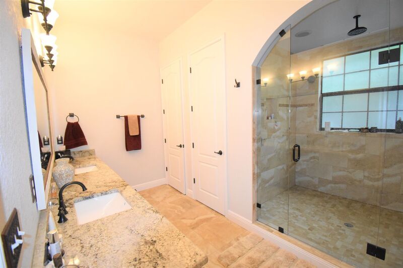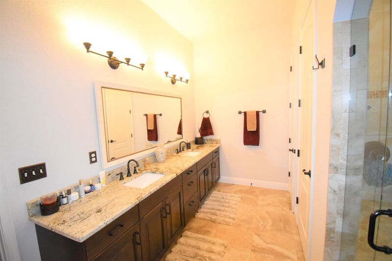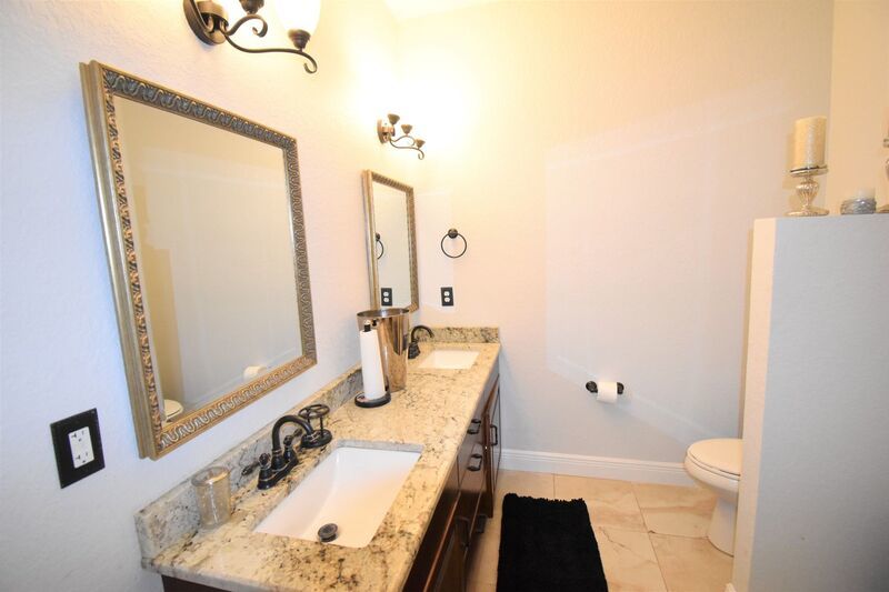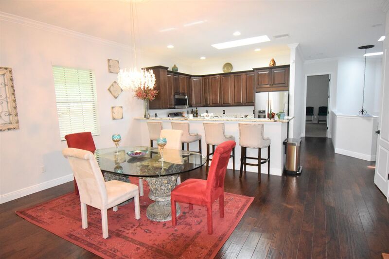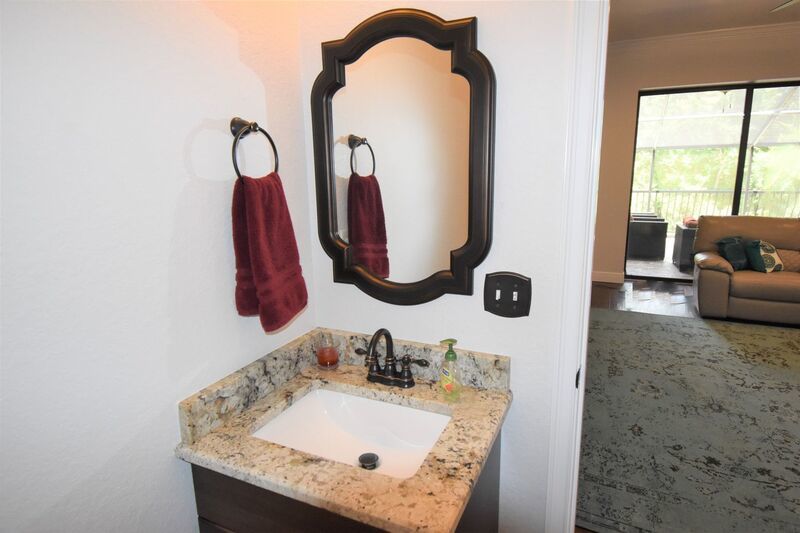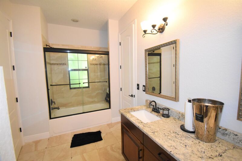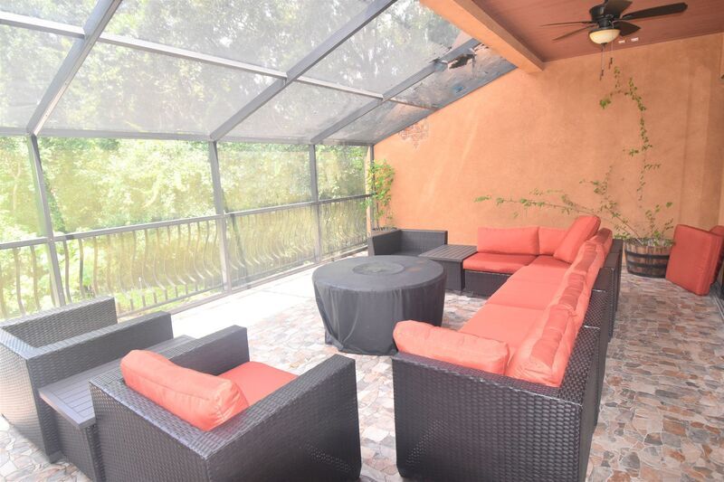 The property exudes Mediterranean architecture, with exquisite details such as custom millwork, rich hardwood flooring, and color-changing underlit cabinets. The gourmet kitchen is a highlight, featuring exotic granite countertops, top-of-the-line stainless steel appliances, and custom wine storage. The spacious living area includes an open kitchen that flows into a stunning dining space and great room, with a panoramic wall of sliders leading to a private screened veranda perfect for entertaining.