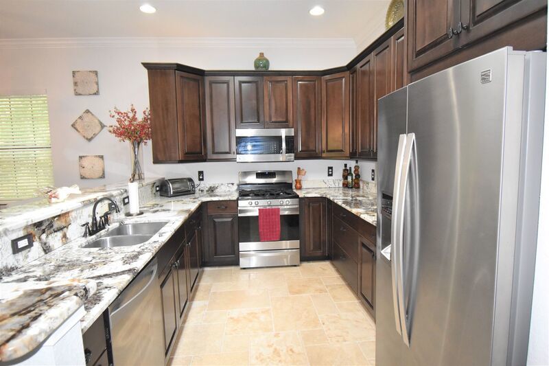 The luxurious master suite offers a private balcony, an ample walk-in closet, and a spa-worthy master bath. Additional living space is found downstairs, with a family room, three bedrooms, two baths, and a full-size washer and dryer. The community amenities are equally impressive, with a courtyard featuring a fountain, a community pool with private cabanas, and a dog park. Pets are negotiable.