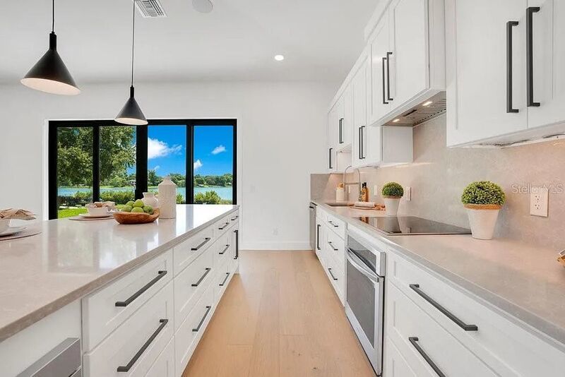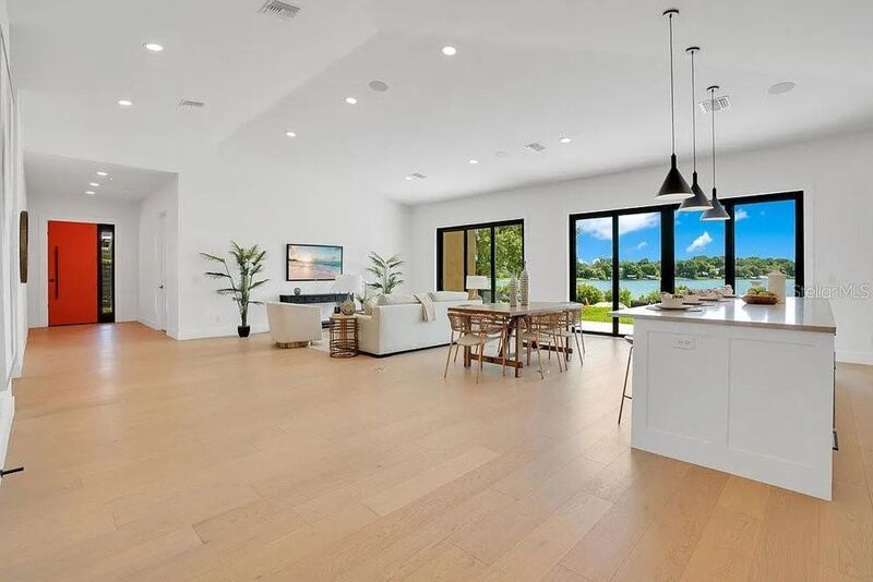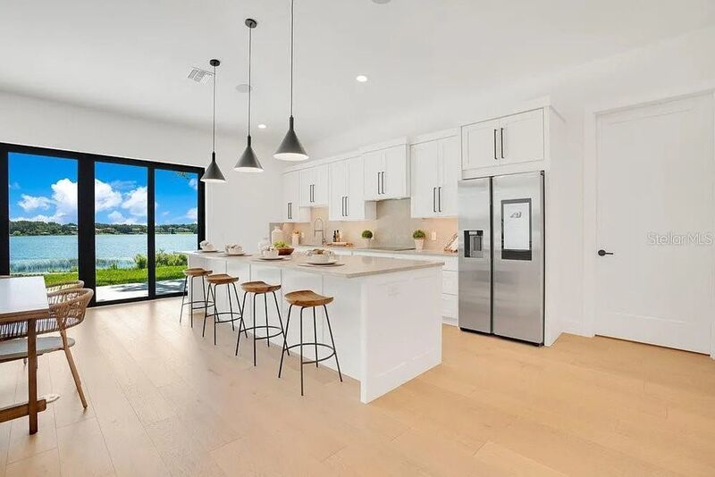 Introducing a stunning new lakefront home, completed in July 2024, nestled in the heart of Downtown Windermere. This exquisite single-story residence spans 2,868 sq ft, offering an open-concept layout with white oak hardwood floors and sleek contemporary design.