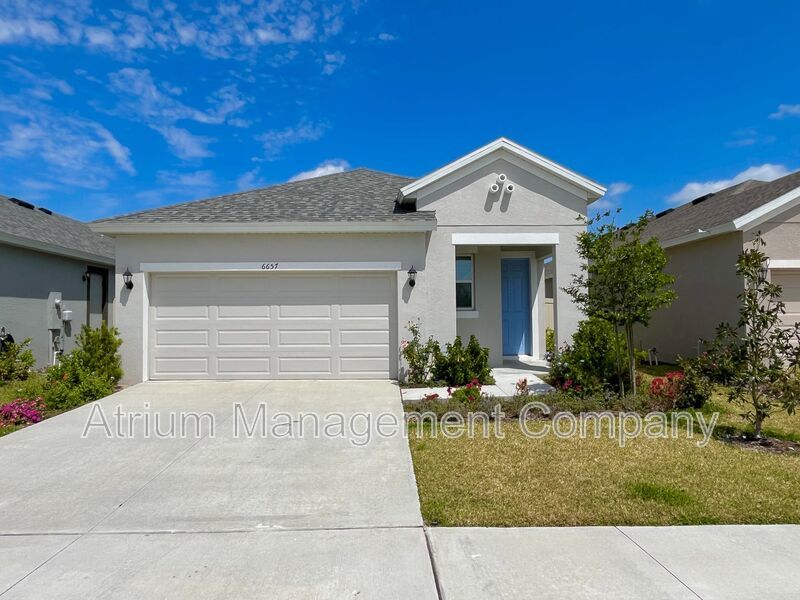 Step into your new home at 6657 Great Bear Dr., located in the sought-after Villages at Bridgewater community in Lakeland, FL! This inviting house boasts three bedrooms and two bathrooms, offering the perfect blend of space and comfort. The 2-car garage provides ample room for parking and storage. Inside, you'll appreciate the convenience of a full-size washer and dryer. Relax and unwind in the fully fenced backyard with serene water views.