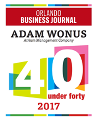 The 34-year-old bought Lake Mary-based real estate firm Atrium Management Co. in October 2014 and took it from managing 200 to more than 800 luxury residential rental properties today. Wonus also redeveloped more than 60 townhomes in downtown Orlando’s Milk District, which earned him a title among the Orlando Business Journal 2017 Residential Real Estate Awards.